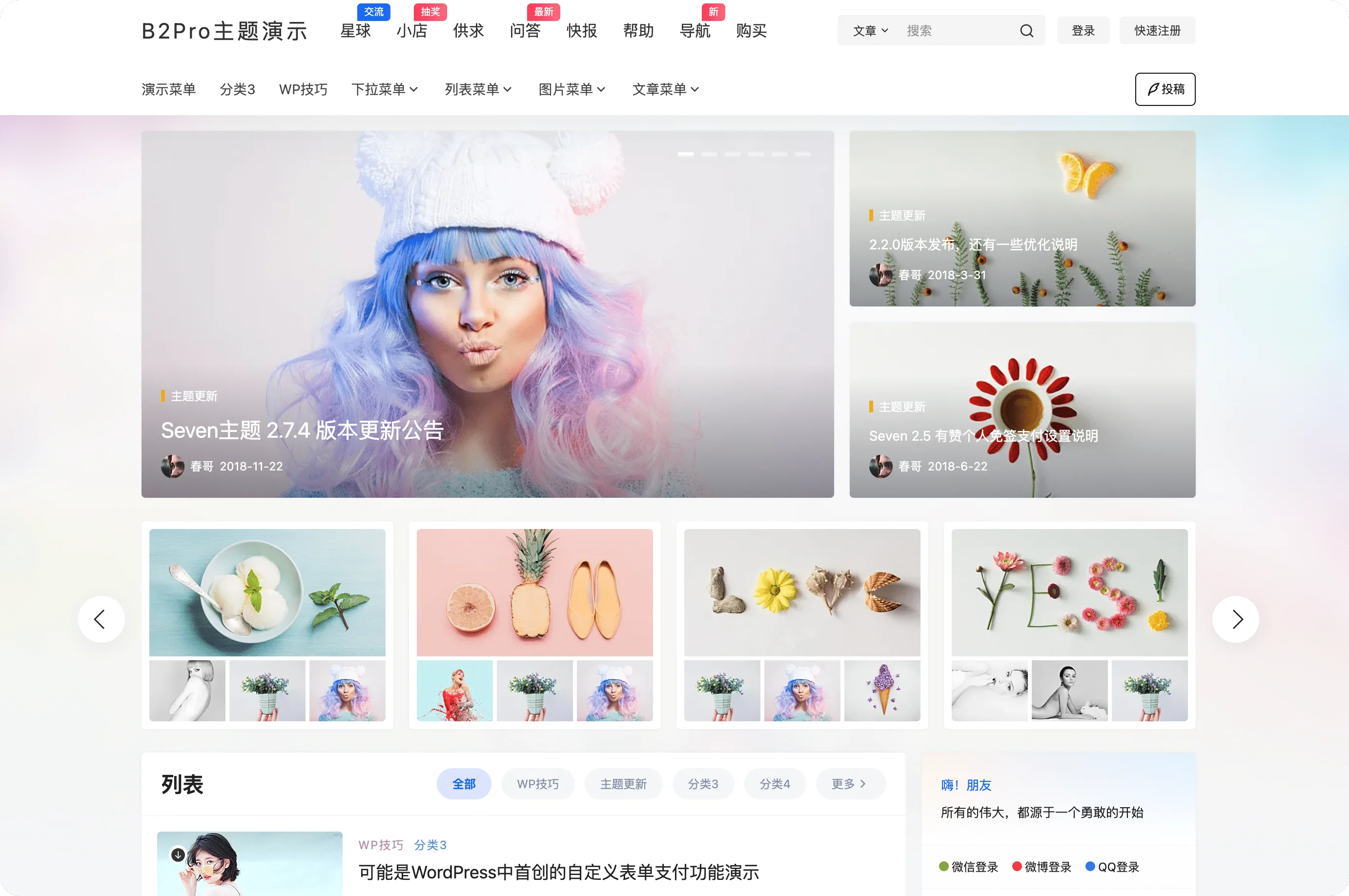资讯、资源、社交、商城、圈子、导航等多功能商用WordPress主题